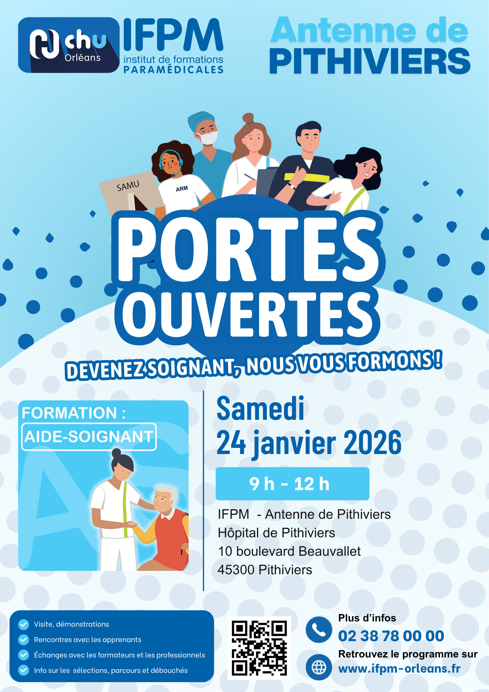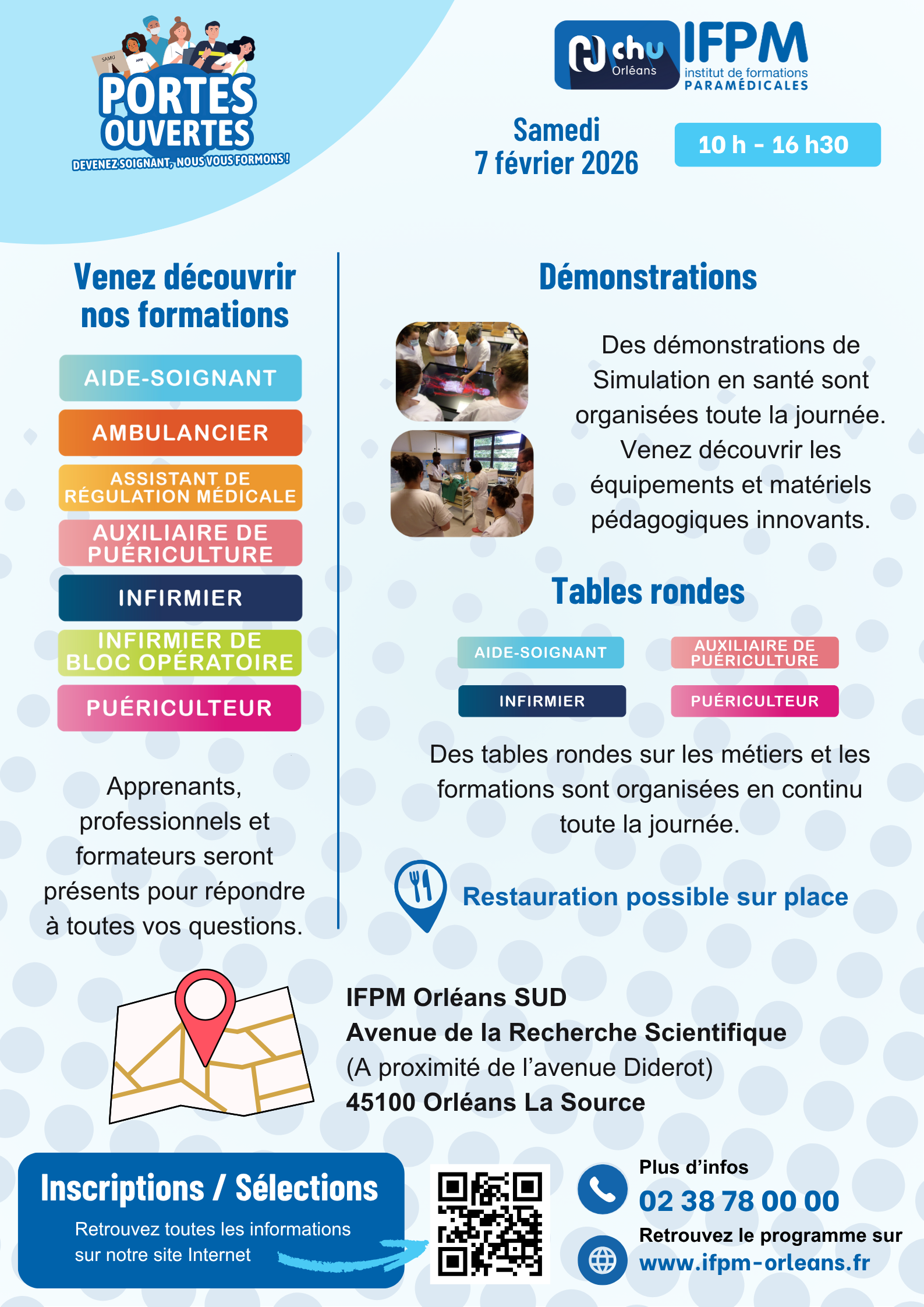 Venez découvrir 7 de nos formations au sein de notre Hôpital-École et obtenir les réponses à toutes vos questions : présentation des formations, modes de sélection, Parcoursup, financements …