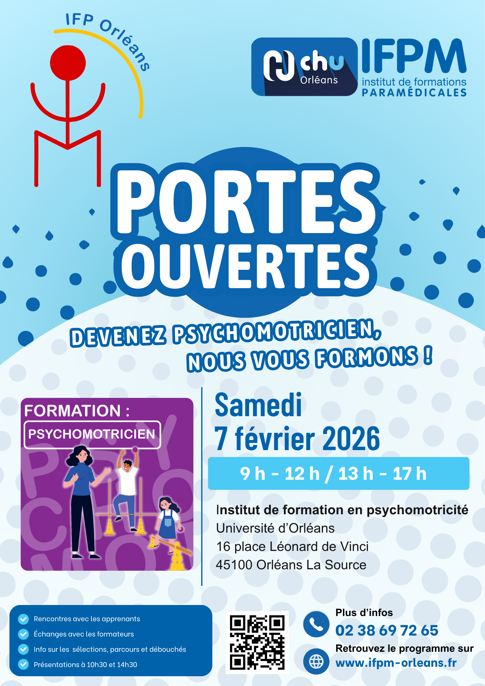 Institut de formation en psychomotricité – Université d’Orléans – 16 place Léonard De Vinci* – 45100 Orléans La Source
