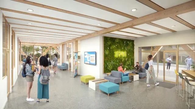Cette évolution d’ampleur doit anticiper l’augmentation des effectifs étudiants (900 aujourd’hui, 1500 à l’horizon 2030) et favoriser leur encrage sur la région. Le nouvel institut (qui comprend aussi la mise à niveau de l’actuel bâtiment) sera livré en juin 2027 pour une mise en service en septembre 2027.